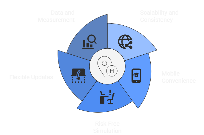Why does digital learning (eLearning and scenario-based modules) development make sense in this marketplace? Here are the key advantages: